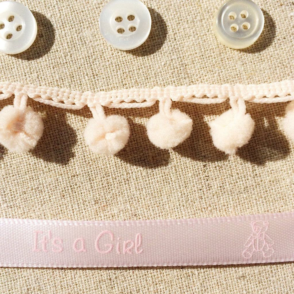 Min Pom Pom Trim: This baby pink trim has mini 10 mm pom poms.