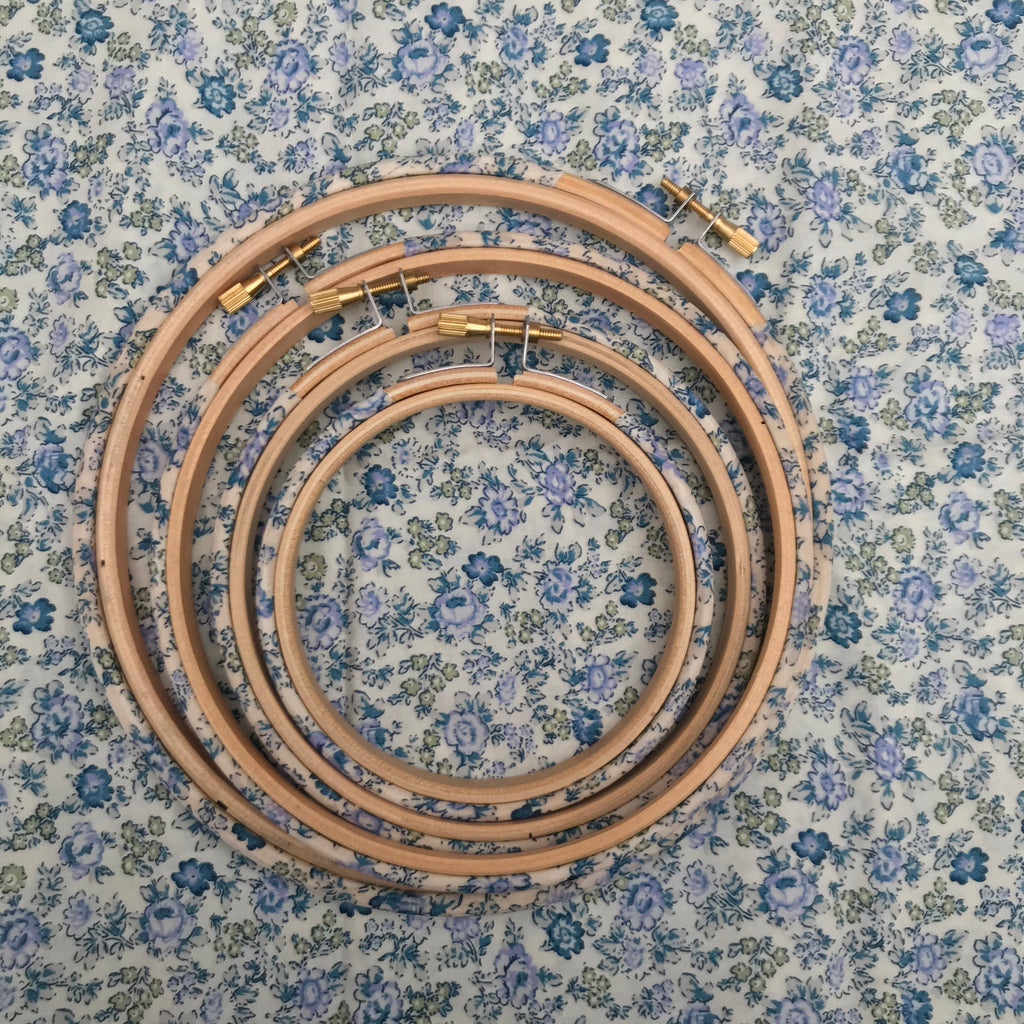 My hoops are available from a mini 3 inch hoop right up to a large 12 inch embroidery hoop. Simply select the hoop size appropriate to the size of your project and fabric you are stitching on. Hoops are measured across the diameter of the embroidery hoop, from the inner edge of the outer hoop. When framing embroidery wall art I like to leave around an inch between my stitching and the hoop.