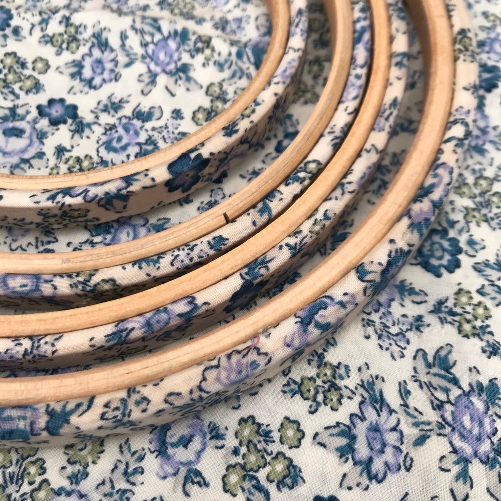 My Embroidery Hoops are high quality wooden embroidery hoops, hand covered with cotton fabric for a beautiful vintage feel. My fabric covered embroidery hoops can be either used as a working hoop or as a frame to create beautiful pieces of wall art. This design is also available in Pink or Purple.