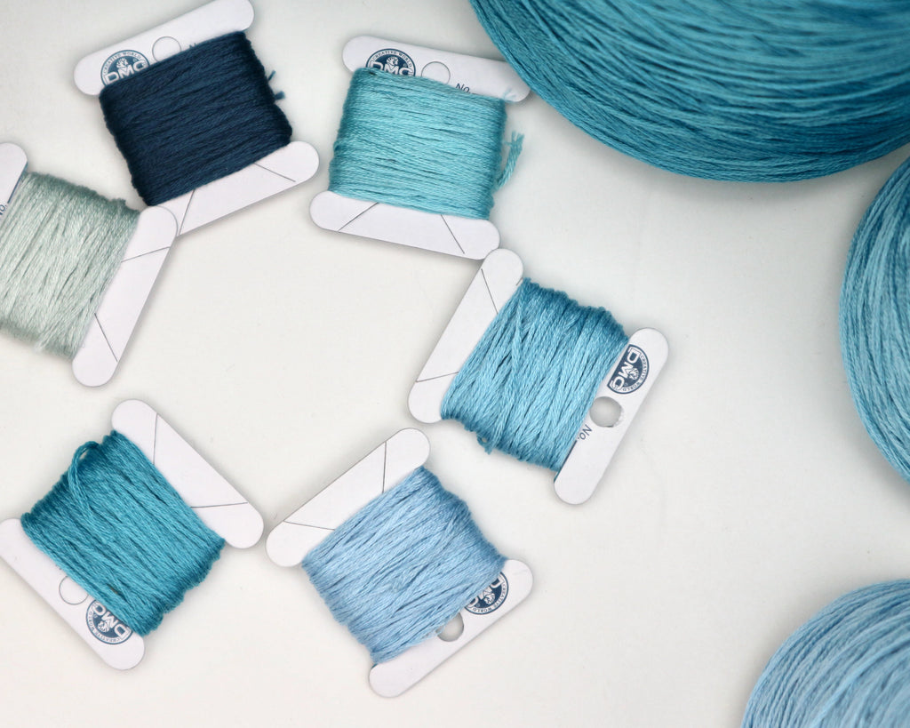 DMC, Stash Building Thread Collection. Frosty Blue Colour Pallet.