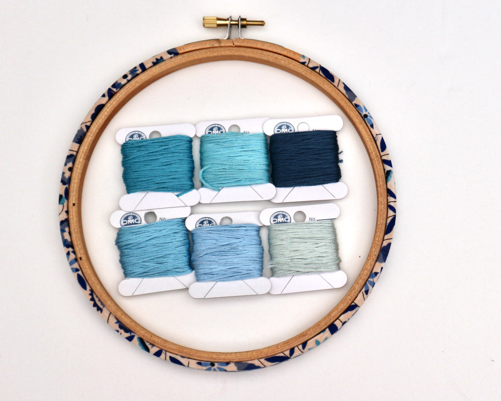This curated collection of DMC stranded embroidery thread contains six colours and around 6 meters on each.
