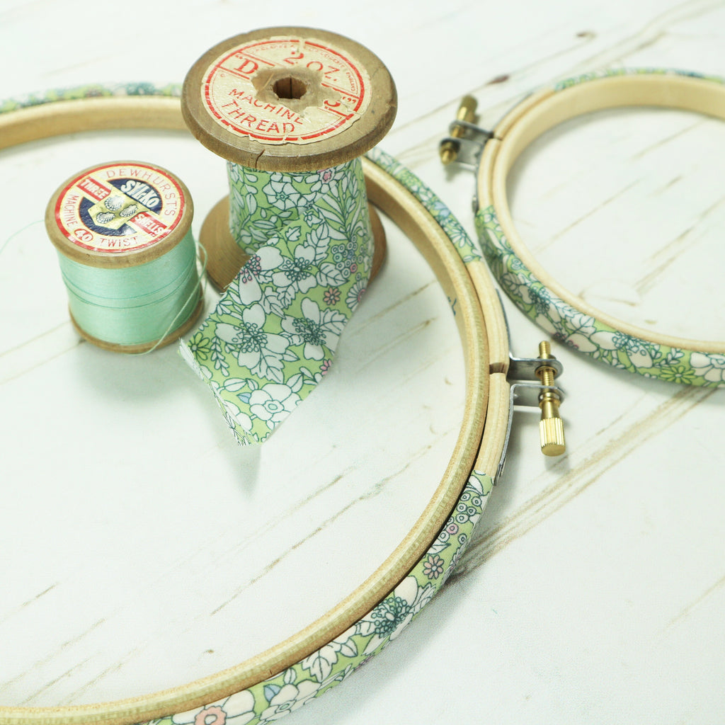 Green, Fabric Covered Embroidery Hoops. June Meadow Print