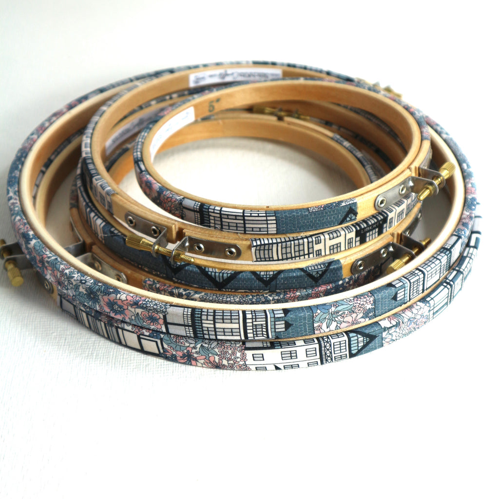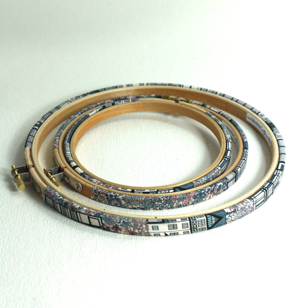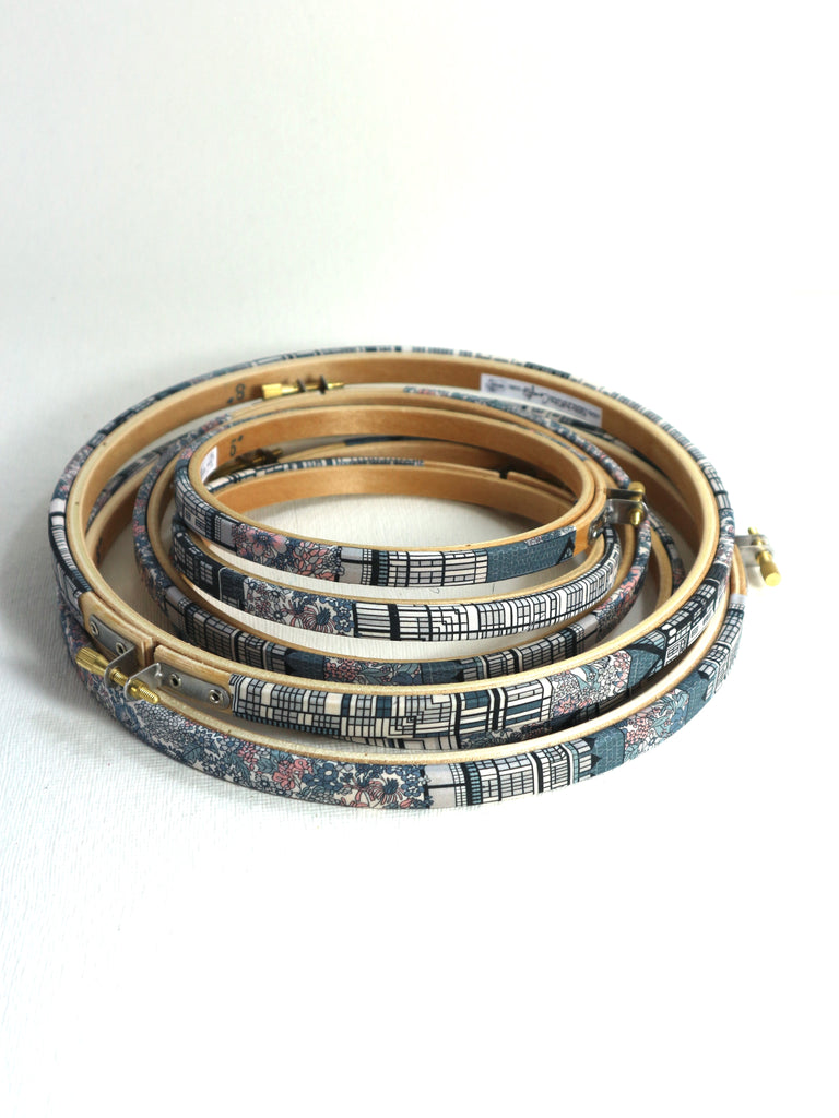 Tudor Bella Print, Embroidery hoops. Tana Lawn wrapped, Liberty Embroidery Hoop