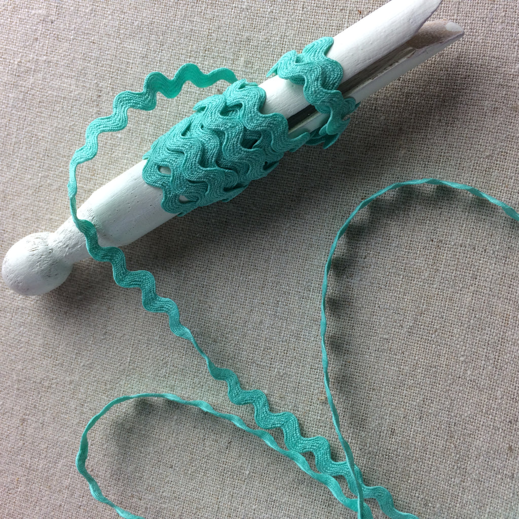 and 3 meters of Light turquoise ric rac, this 7 mm wide ric rac in a fresh a light turquoise adds fun and texture to the collection.