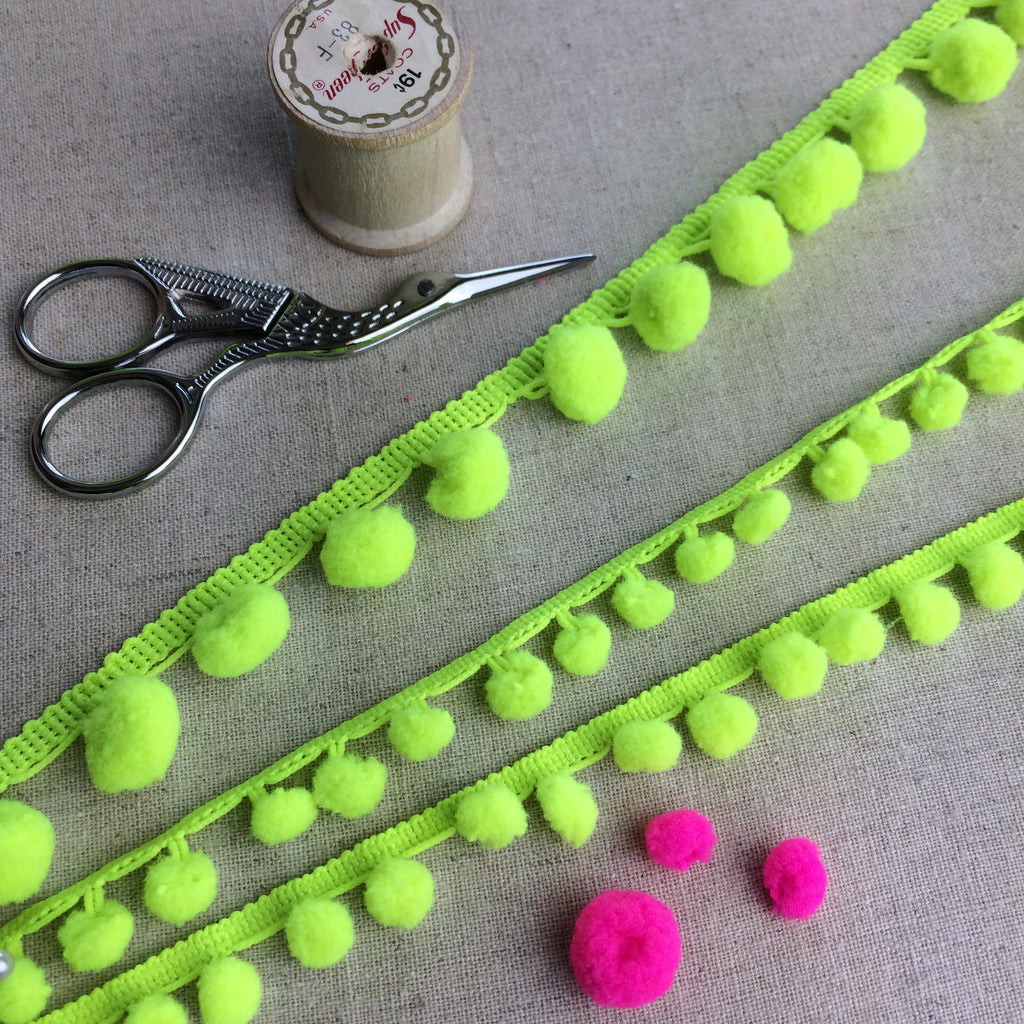 1 meter of Neon yellow Mini Pom Pom trim: 10 mm pom poms