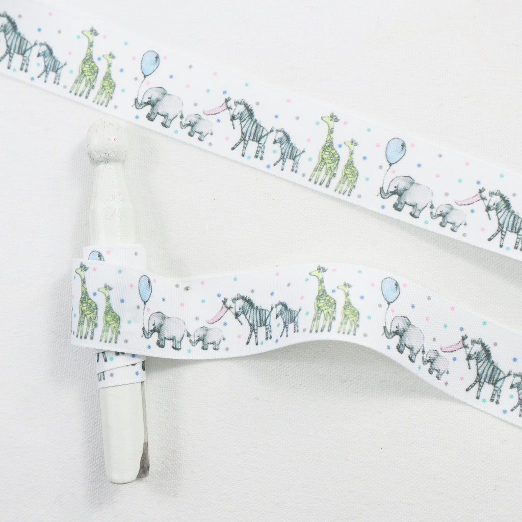 2 meter of Baby Animal print: this is a 25 mm wide white grosgrain ribbon.