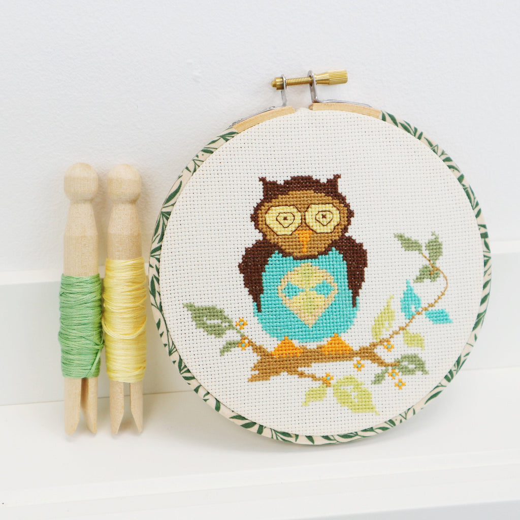 This kit has everything in it you need to create this cute Woodland Owl cross stitch wall hanging including unique decorative embroidery hoop and wooden back to complete this beautiful piece of hoop art.