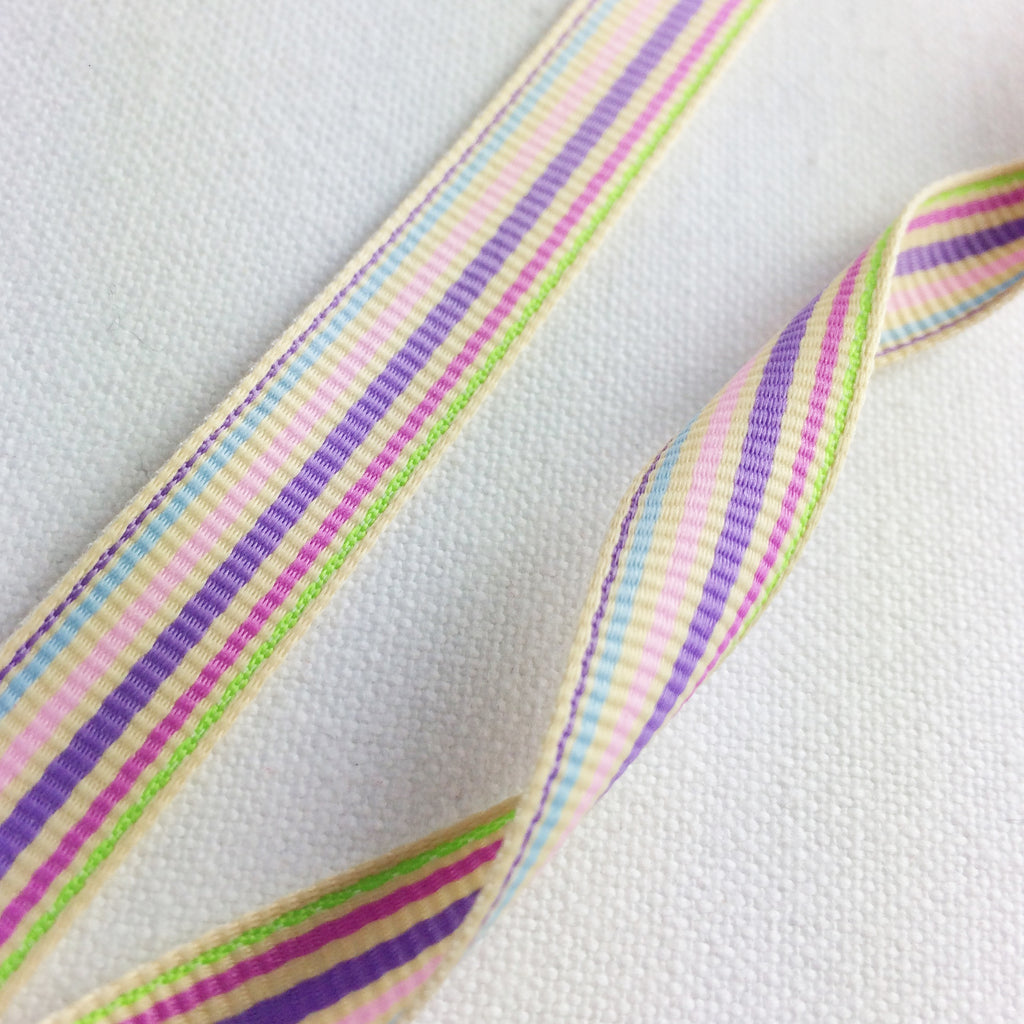2 meters of Pastel rainbow stripe ribbon: This is a soft grosgrain ribbon with a pastel variegated stripe. this is 1/2 inch wide.