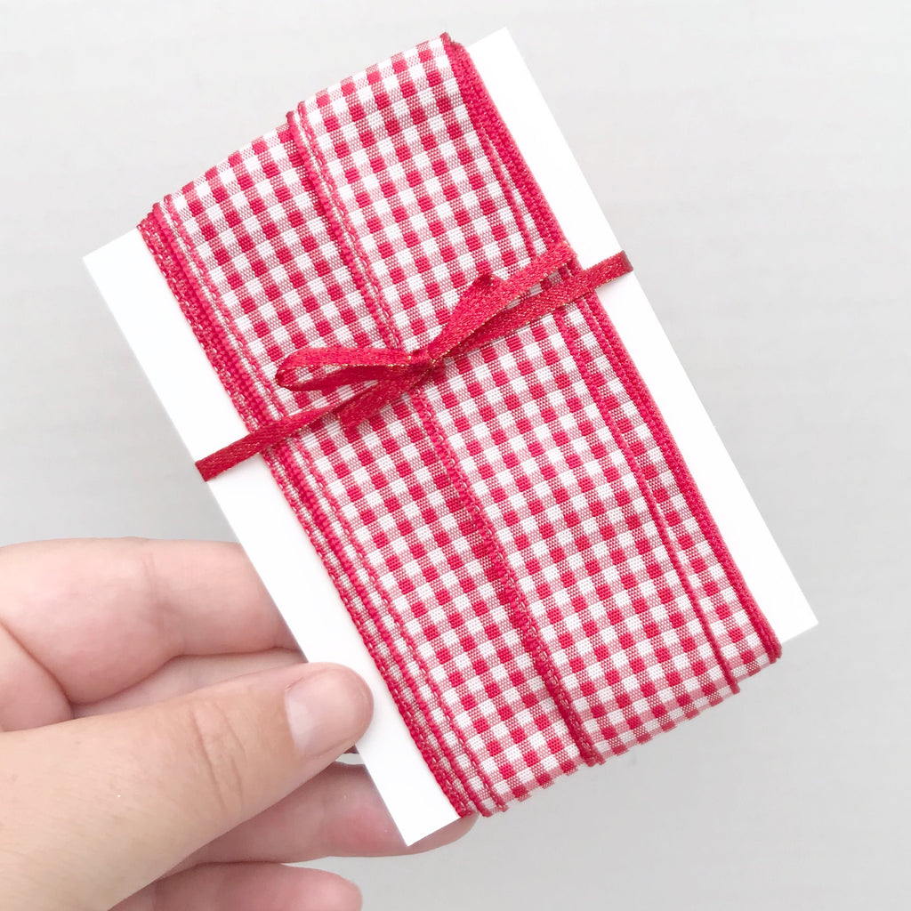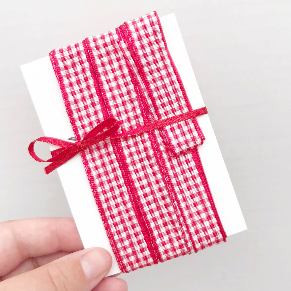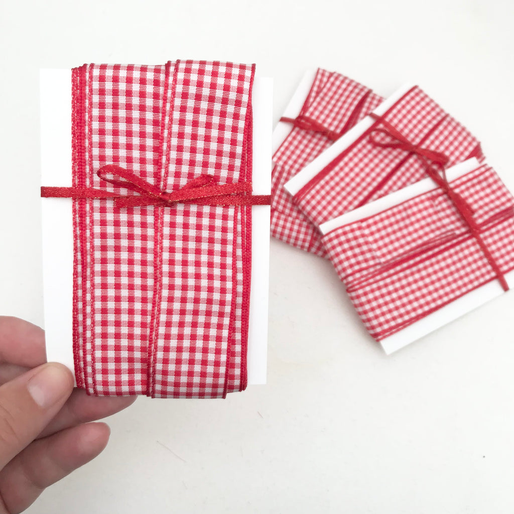 When you orded this cute red gingham ribbon you will receive 5 meters of your selected ribbon.