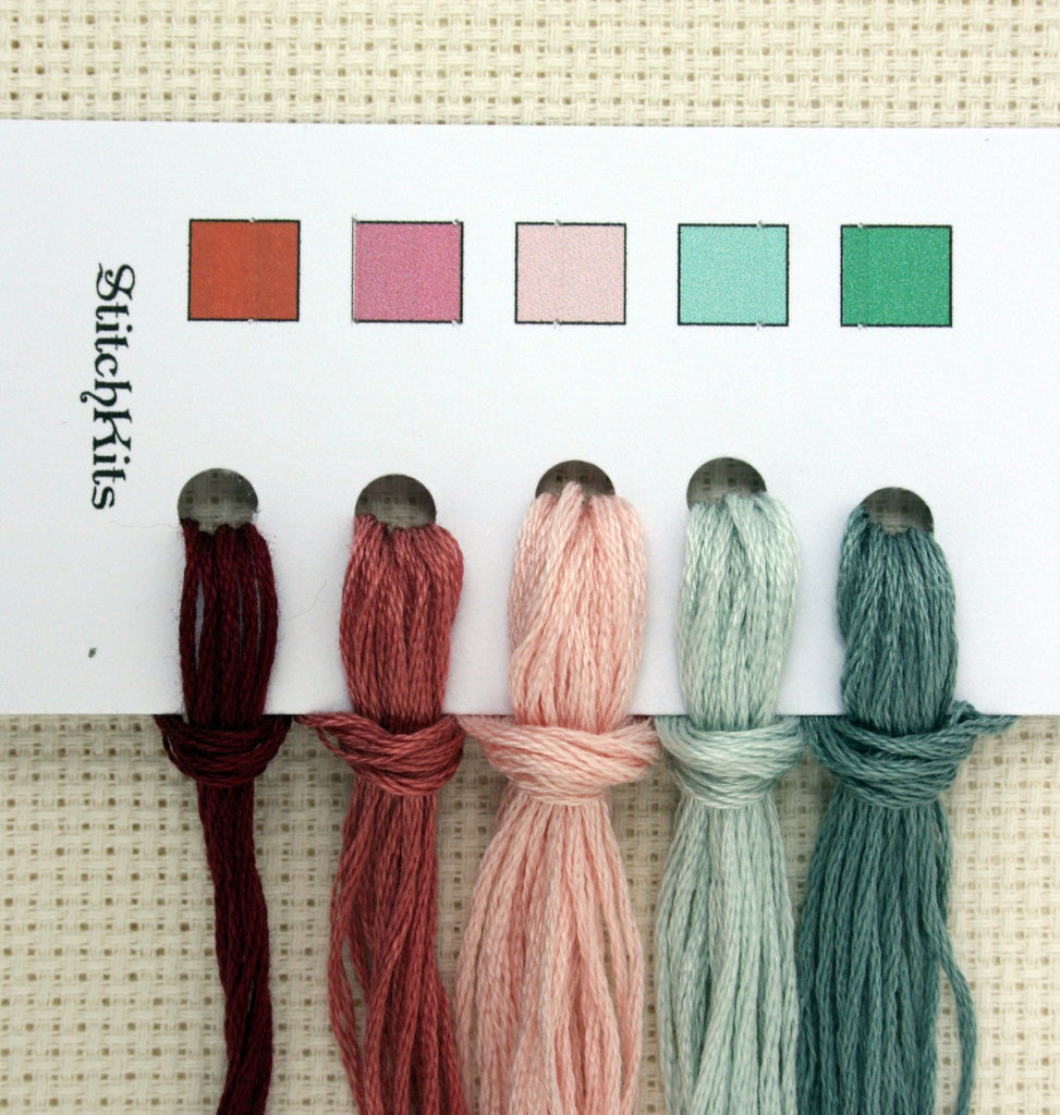 Embroidery threads in five colours (These are high quality DMC cotton threads which are colour fast and fade resistant.)